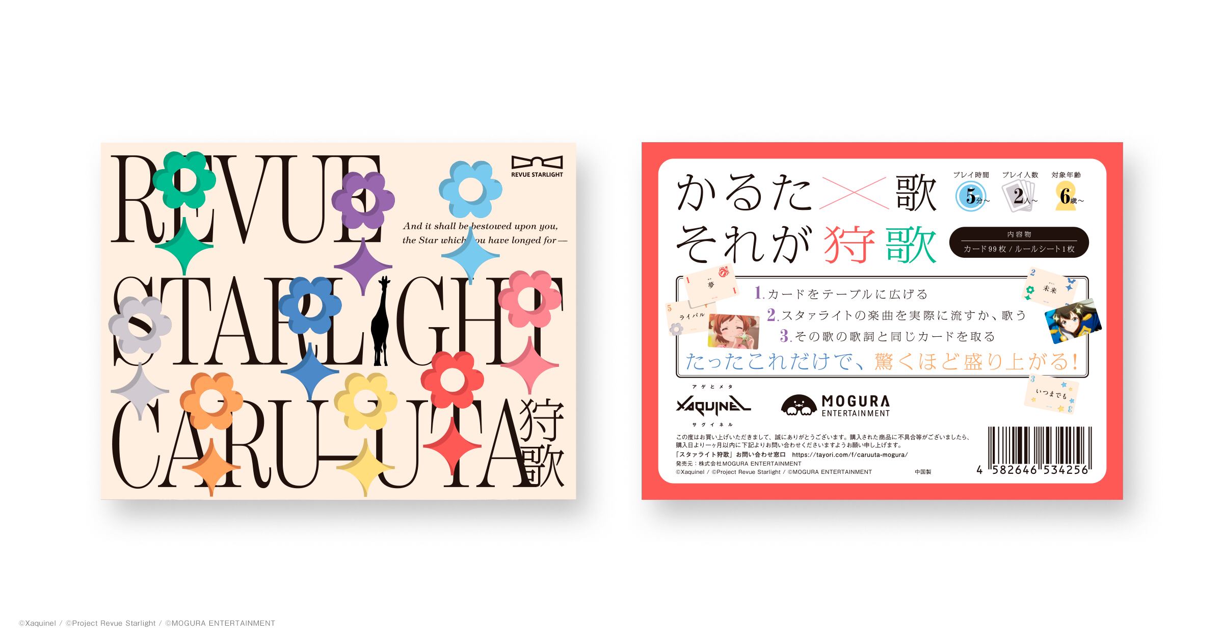 9周年を迎えるメディアミックス作品「少女☆歌劇 レヴュースタァライト」と、“歌詞で遊ぶ新感覚カードゲーム”「狩歌」(かるうた)のコラボレーション商品です。